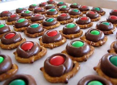 Cover cookie sheet with wax paper. place a kiss on each pretzel and bake at 200 for 5-6 minutes to melt the kiss. Have M&Ms ready to press into kiss when it comes out of the over. Slide into fridge to set, then bring to room temp to serve!
