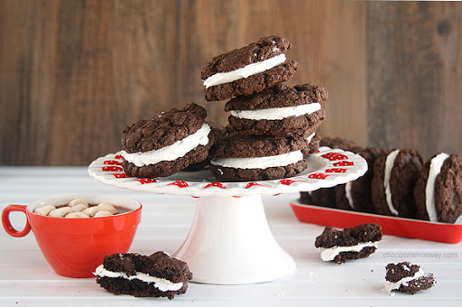 Take one cookie and spread some marshmallow filling onto the flat side. Take another cookie and press the flat side onto the filling. Repeat with the remaining cookies.