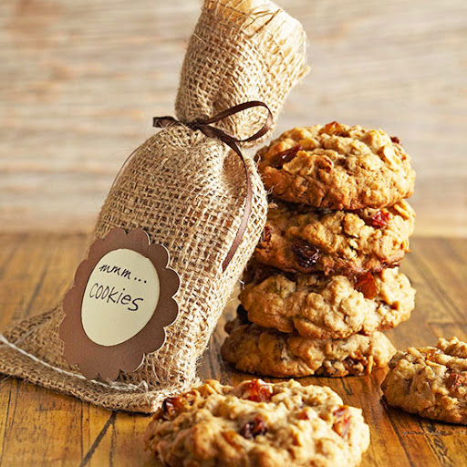 A bold dose of cinnamon and dried fruit adds some sophisticated flavor to oatmeal cookies. To package, line a small burlap gift bag with brown parchment paper. Tie the filled bag with ribbon and add a tag.
