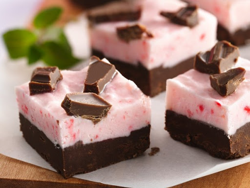 Spread carefully over chilled chocolate layer. Sprinkle chopped candy bars over top; press in lightly. Refrigerate just until set, about 1 hour.