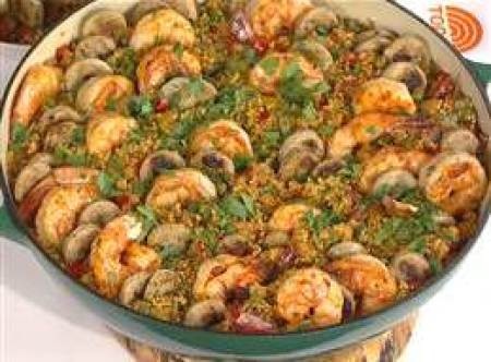 Heat olive oil in a 12-inch stainless steel skillet (with a lid) over medium-high heat, cook shrimp until seared, about 3 minutes per side (don't over cook). Remove from pan, set aside.