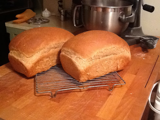 4. Let rise in pans about 1 hour, or until the dough has risen enough to really fill up the pan, and has crested over the top. Bake loaves in preheated oven for 35 to 40 minutes, or until an instant-read thermometer reads 190°F.
