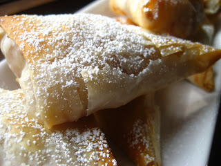 Brush the outside of the triangle phyllo turnover with extra butter.