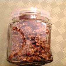 IN A BOWL STIR OATS / SUNFLOWER SEEDS / ALMONDS / COCONUT / FLAX SEED MEAL AND CINNAMON AND CRANBERRIES. TRANSFER TO DRY SHEET AND TOASRT FOR 15 MINUTES.