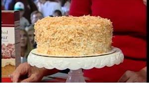 Assembly: Slice each layer in 1/2 horizontally, so each cake forms two layers. Frost cake, putting frosting between each layer. Frost top and sides with Buttercream and sprinkle top with toasted coconut. Press coconut onto the sides.