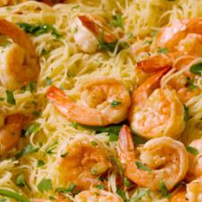 After 30 minutes, pull your roasting dish out of oven and set the shrimp on top and return to oven to roast for 2 minutes. Turn the shrimp over and set aside to let the residual heat finish the cooking on the second side. Serve warm.