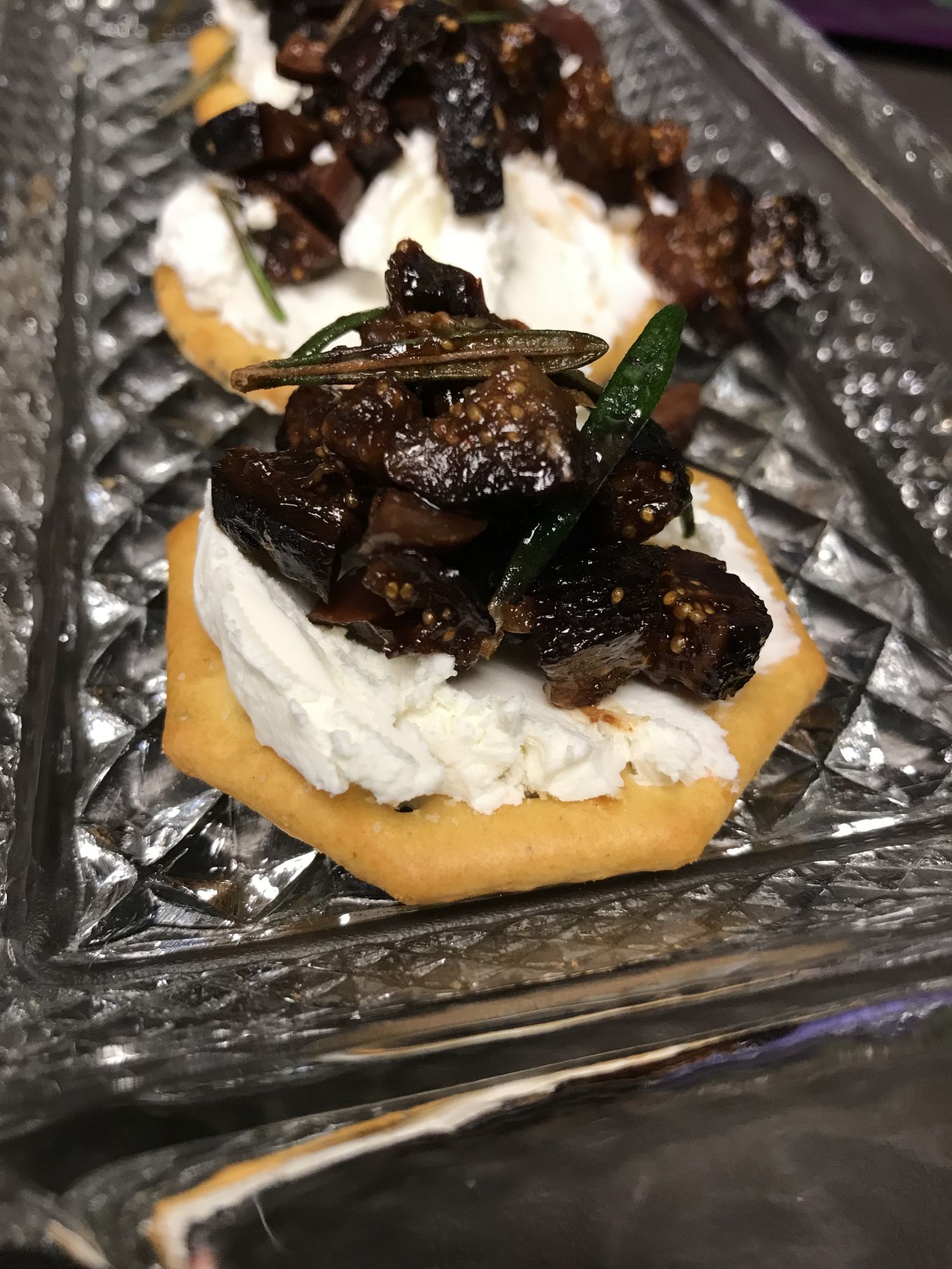 Sweet dried figs with the bold flavors of Kalamata olives, make a perfect tapenade to serve over creamy goat cheese with either crackers or crostini.