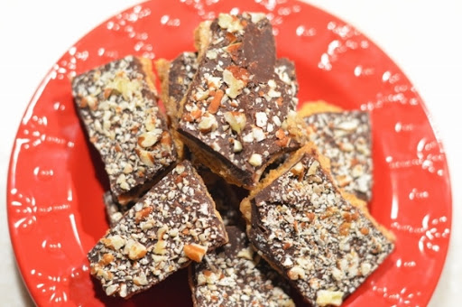 Carefully pour sugar/butter mixture evenly over the graham cracker layer. Spread to cover. Bake for 10 minutes.