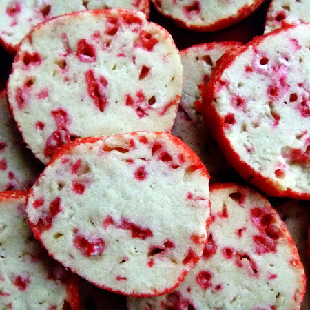 Shape dough into 2 12-inch logs, and roll in red sugar; wrap logs in wax paper, and freeze until firm.