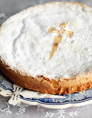 Just before serving, dust the top of the cake with confectioners' sugar. Or, if you like, cut a St. James cross out of paper. Place it in the middle of the cake, and dust the cake with confectioners' sugar, then remove the paper.