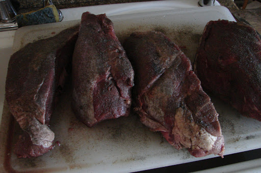 TRIM ROAST OF EXCESSIVE FAT AND CUT INTO 1/4'S