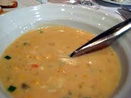 Pour the crab soup into a hot soup plate. Spoon corn and leek mixture in center of plate. Garnish with lump crabmeat and chervil sprigs.