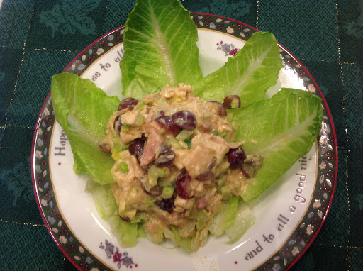 From Ann Romney's cookbook. Tastes best if made the day before. I made this January 2014 with some leftover rotisserie chicken. It was good but not great. I think more chicken and less curry might have helped. I used more celery and grapes then it called for (good). I am hoping it will taste better tomorrow as the original recipe said! I also substituted some plain yogurt for some of the mayonnaise.