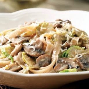 Creamy Fettuccine with Brussel Sprouts & Mushrooms
