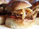 Prepare the sloppy joes: In a large saute pan over medium-high heat, combine the canola oil, bell peppers, jalapeno and onion; cook for 5 minutes. Add the beef and pork; cook thoroughly, breaking up the meat as it browns. Add the garlic. Depending on the amount of residual grease, you may need to drain some of the fat from the pan. Deglaze with the red wine, then stir in the remaining sloppy joe ingredients (except the rolls) and season with 1 tablespoon each salt and freshly ground pepper. Reduce the heat and simmer for 20 to 30 minutes. If the sauce gets too thick as it simmers, add up to 1 cup water to adjust the consistency. Toast the rolls and set aside.