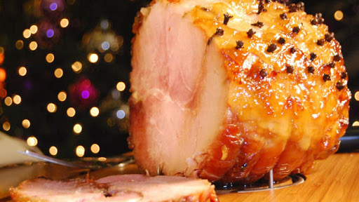 Pour on the rest of the glaze and return to the oven for another 25–35 minutes until the ham is golden brown, basting with the pan juices frequently. It also helps to turn the pan as you baste to ensure that the joint colours evenly.