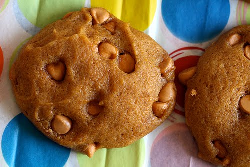 Mix in the chips. Using an ice cream scoop with a 1/4-cup capacity, scoop mounds of the dough onto the prepared baking sheets, spacing the cookies at least 2 1/2-inches apart. You could also simply use a 1/4-cup measuring cup if you don’t have a scoop. Use a thin metal spatula to smooth and flatten the rounds.