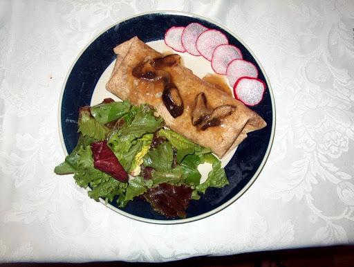 Note: if in a hurry, skip the laborious process of making crepes and substitute whole wheat flour tortillas. They are not quite as yummy, but MUCH easier.
