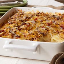 BAKE 30 min.; top with remaining VELVEETA. Bake 5 min. or until melted. Sprinkle with bacon.