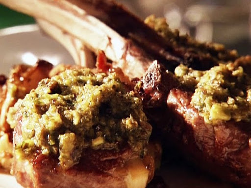 Coat a large saute pan generously with olive oil and bring to medium-high heat. When the oil is hot but not smoking, add the lamb chops and cook for about 2 minutes on each side to brown. If the pan begins to smoke, lower the heat. The chops should be beautifully caramelized on both sides. Remove the chops to a sheet pan and schmear generously with the pistachio tapenade. Place in preheated oven and cook another 4 to 5 minutes for medium rare. Remove chops from oven and let rest for at least 5 minutes before serving.