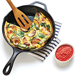 Spanish Potato and Spinach Tortilla with Red Pepper Sauce