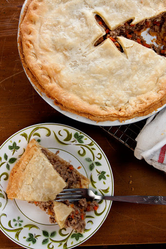 2. Meanwhile, bring a 4-qt. saucepan of water to a boil; add potatoes, and cook until tender, about 6 minutes. Drain, and mash until smooth; set aside. Heat oil in a 4-qt. saucepan over medium-high heat. Add pork, and cook, stirring, until no longer pink, about 4 minutes. Add garlic, onions, and carrot, and cook, stirring, until soft and pork is well browned, about 20 minutes. Add cider, celery seed, cloves, nutmeg, cinnamon, ginger, bay leaves, and pepper, and cook until all liquid is evaporated, about 3 minutes. Remove from heat, and stir in mashed potatoes; let filling cool completely.