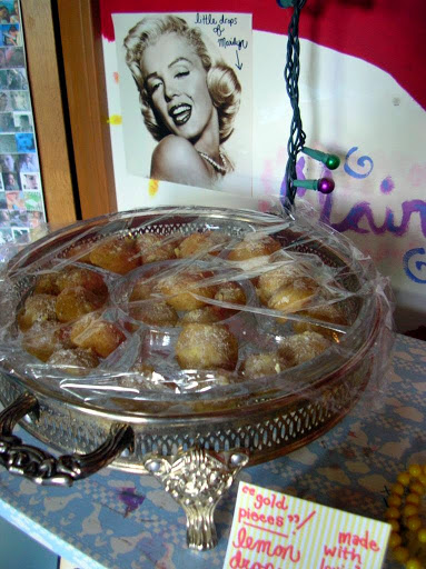 Adri made these luscious little drops of lemon sweetness for my "How to marry a Millionaire" party. She got the recipe while she was watching Giada! She used Earth Balance butter to make them vegan! They were tiny, yellow and delicious! "gold pieces!"