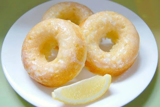 While donuts are cooling, prepare glaze. Combine lemon juice and powdered sugar, and whisk together. Drizzle glaze over cooled donuts, or dip each donut into the glaze for complete coverage