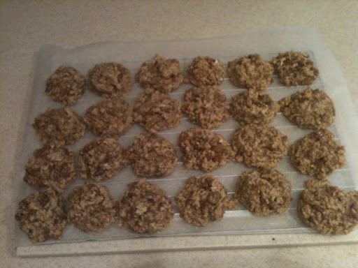 Preheat oven to 375 degrees. Grease baking sheets. Combine cake mix, oats, eggs, butter, and oil in large bowl. Beat at low speed until blended. Stir in raisins and pecans. Drop by teaspoon onto baking sheets. Bake for 8 to 10 minutes or until lightly browned. Cool 1 minute on baking sheet before removing to wire rack to cool completely.