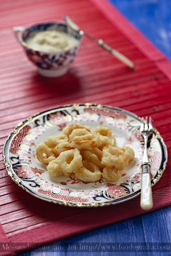 Mix together beer and semolina, whipping with a spoon until creamy. Soak the calamari rings in the mixture and fried in abundant and very boiling sunflower oil for about 4 minutes.