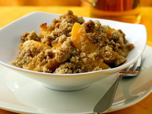 2 In ungreased 8-inch square baking dish or 2-quart round casserole, place peaches. Sprinkle cookie mixture over peaches.