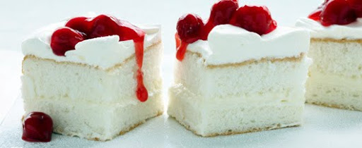 3. To assemble, spread half the whipped topping in bottom of 13x9-inch pan. Arrange 8 cake slices on whipped topping: press lightly. Spread with cream cheese mixture. Arrange remaining cake slices on cream cheese mixture; press lightly. Spread with remaining whipped topping. Spoon cherry pie filling evenly over top. (Pan will be filled to the brim.) Refrigerate for 2 hours or until ready to serve. Cut into squares.