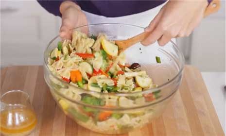 Cook macaroni according to package directions; drain and rinse with cold water. Set aside in large mixing bowl. Prepare next six ingredients and add to macaroni.