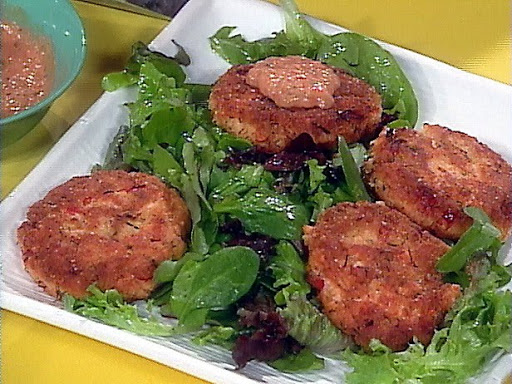 Combine mayonnaise, chili sauce and relish in a small dish. To serve, place salmon cakes on a bed of baby greens, 2 cakes per person and top with chili mayonnaise sauce.