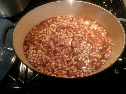 Bake for 3 to 4 hours in the preheated oven. Remove the lid about halfway through cooking, and add more liquid if necessary to prevent the beans from getting too dry.
