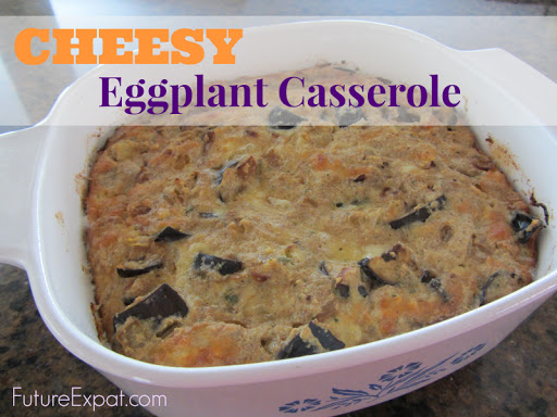Spray your casserole dish with cooking spray and add the eggplant mixture. Bake until golden and bubbly, approximately 45 minutes.
