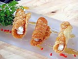 With a spoon, fill the cannoli shells with the lobster filling. Drizzle with the gastrique and garnish with tarragon leaves.
