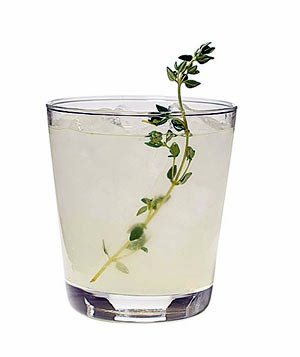 In a pitcher, using a wooden spoon, mash the thyme with the lime juice. Add the lemonade and refrigerate for at least 1 hour and up to 1 day. Add the vodka, if using. Serve over ice and garnish with the thyme sprigs.