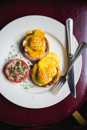 This take on eggs Benedict incorporates a rich red wine sauce.