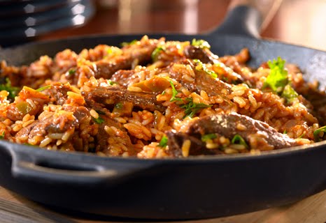 2.Stir the picante sauce, broth and rice in the skillet and heat to a boil. Reduce the heat to low. Cover and cook for 20 minutes or until the rice is tender. Sprinkle the beef mixture with the parsley, if desired.