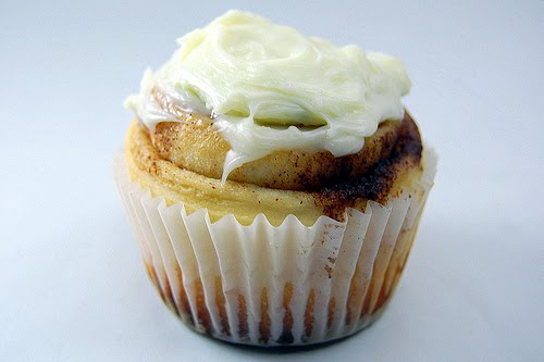 After the dough has doubled in size, turn it out onto a lightly floured surface, cover and let rest for 10 minutes. In a small bowl, combine brown sugar and cinnamon. Line cupcake pan with cupcake liners, and lightly spray over the top of them with cooking spray.