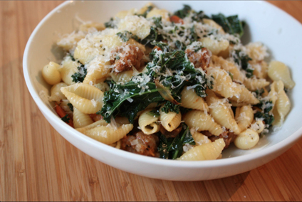 4. Add sausage and garlic, Season with salt and pepper if desired; cook, stirring frequently, for 5 to 7 minutes, or until sausage starts to brown.