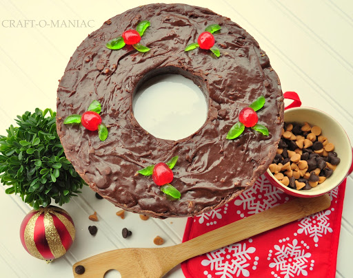 The fudge will set up almost immediately. Garnish can only be added in the first minute or 2 the fudge is in the pan, so work quickly. Decorate your wreath with "holly" made from cut candied red and green cherries. A wreath left plain can be garnished with a pretty fabric bow when serving. Chill covered in the refrigerator and slice fudge very thin when ready to serve, a little goes a long way.