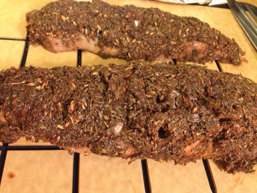 Let the pork sit for about 20 minutes to baste in the seasonings.