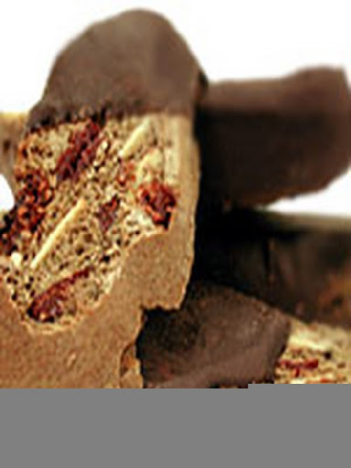 Remove from the oven and cool completely a second time on a wire rack. Dip half of each biscotti in the melted chocolate and place on a parchment lined baking sheet and refrigerate until the chocolate sets.