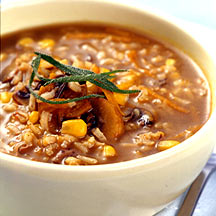 Add cooked barley, broth, rice, corn and sage to vegetable mixture. Bring to a boil, reduce heat and simmer, uncovered, until rice is cooked and mixture is thoroughly heated, about 10 minutes. Yields about 1 cup per serving.