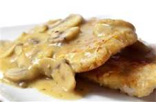 Add the remaining 4 tablespoons of butter to the skillet and add the onion and celery. Cook, stirring, until onion is tender. Add the remaining 1/4 cup of flour to the skillet and stir to blend into the onion mixture. Add the chicken broth and milk and cook, stirring, until thickened. Stir in the mushrooms and add salt and pepper, as needed, to taste. Stir in the lemon juice.