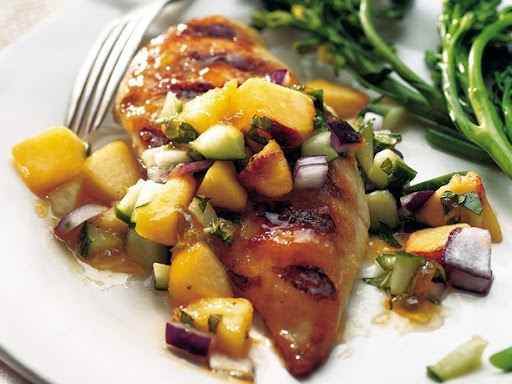 Grilled Chicken Breasts with Cucumber-Peach Salsa