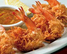 These are tender crispy shrimp in a beer batter with a light flaky coconut coating on the outside. They offer just the right amount of sweetness and taste delicious with the tangy tart flavors that come in the Creole marmalade.