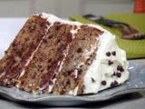 To assemble the cake, place 1 cake layer on a cake plate. Spread with 1/2 the container of chocolate-hazelnut spread and top with a thin layer of whipped cream cheese frosting, about 1/2 cup. Repeat with the second layer, using the remaining 1/2 of the chocolate-hazelnut spread and 1/2 cup whipped frosting. Cook's Note: You will use the chocolate spread only for the bottom 2 layers.